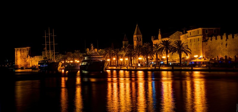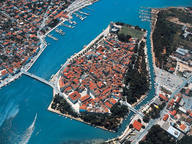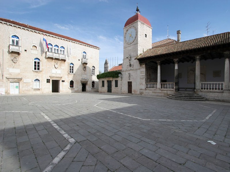Town-museum in the true sense of the word. Trogir is a little medieval city at the seaside with troubled past and prominent stone buildings which played a great role in its inscription to the UNESCO World heritage list. The historic town core is an islet connected with 2 bridges to the island of Ciovo and the mainland. The old town core has been formed between the 13th and 15th century inside defense walls that were restored by Venice in the 15th century. They also added two forts that are still preserved: Castle Kamerlengo and the Tower of Saint Marc. Castle Kamerlengo is situated in the south-west side of the island. Its present shape is in the exact state as it was in the 15th century. South of the castle is the tower of Saint Marc also from the 15th century, and between the tower and the castle there is a gloriet from the time of the French occupation. The eastern part of the town has developed around the main square with the cathedral. The western part named Pasika, was built later in the century. The entrance into the town from the north is through the renaissance town gates from the 17th century with the sculpture of Blessed John Orsini, the patron of the town. On the main square is the cathedral from the 13th – 15th century with characteristics of both Romanesque and Gothic styles. The entrance of the cathedral holds the most valuable work of the Romanesque sculpture in Dalmatia – the portal of master Radovan from 1240.
